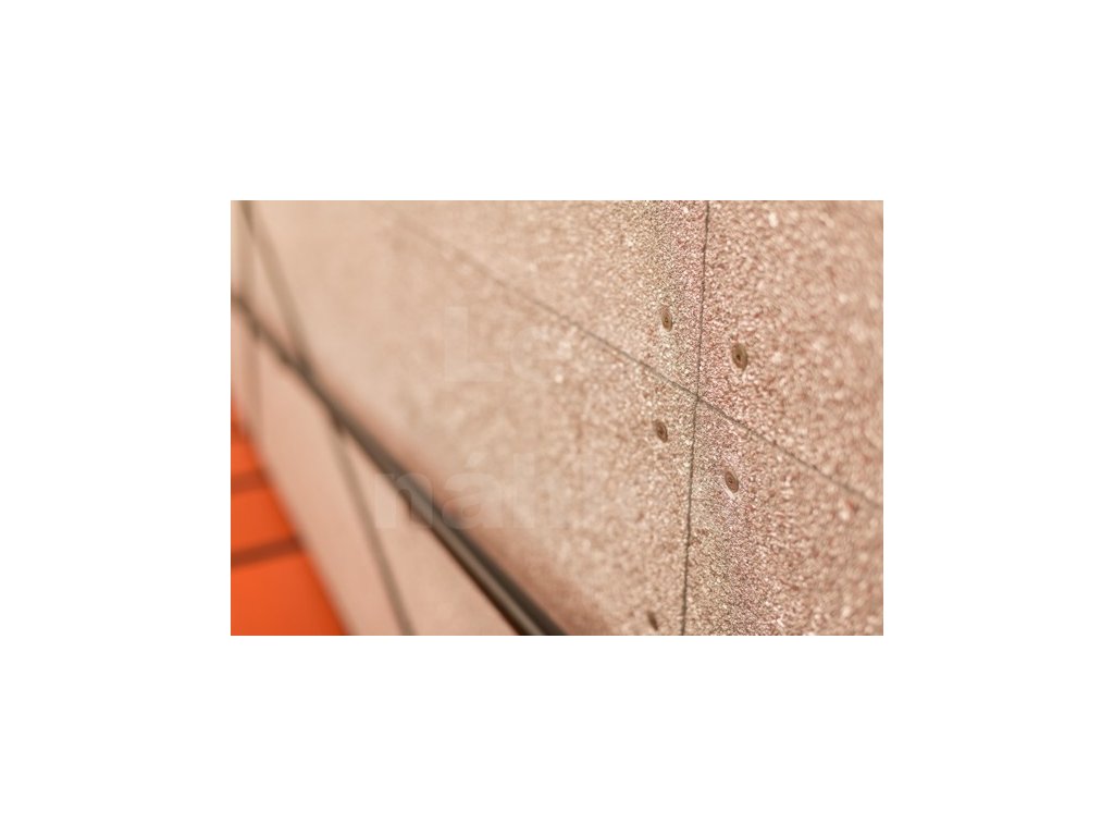 Jednotlivé panely o rozměru 300*900mm vznikaly tavením drceného skleněného recyklátu získaného z odpadu z výroby nápojového skla sklárny Crystalex Nový Bor. Panely musely splňovat náročné požadavky na přesné provedení, bezpečnost a navíc zcela mimořádnou zvukoabsorpční schopnost z důvodů akustického komfortu poslucháren.